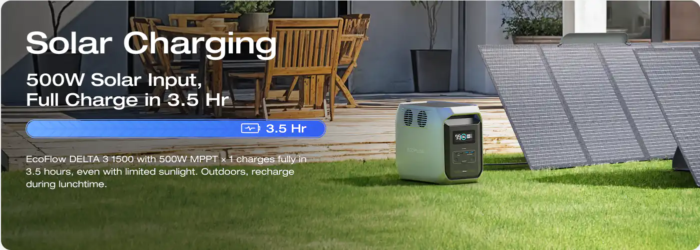 - سازگاری با انرژی سبز: ورودی خورشیدی ۵۰۰ وات برای شارژ پایدار و کاهش انتشار کربن، مناسب برای کمپینگ و زندگی سبز.