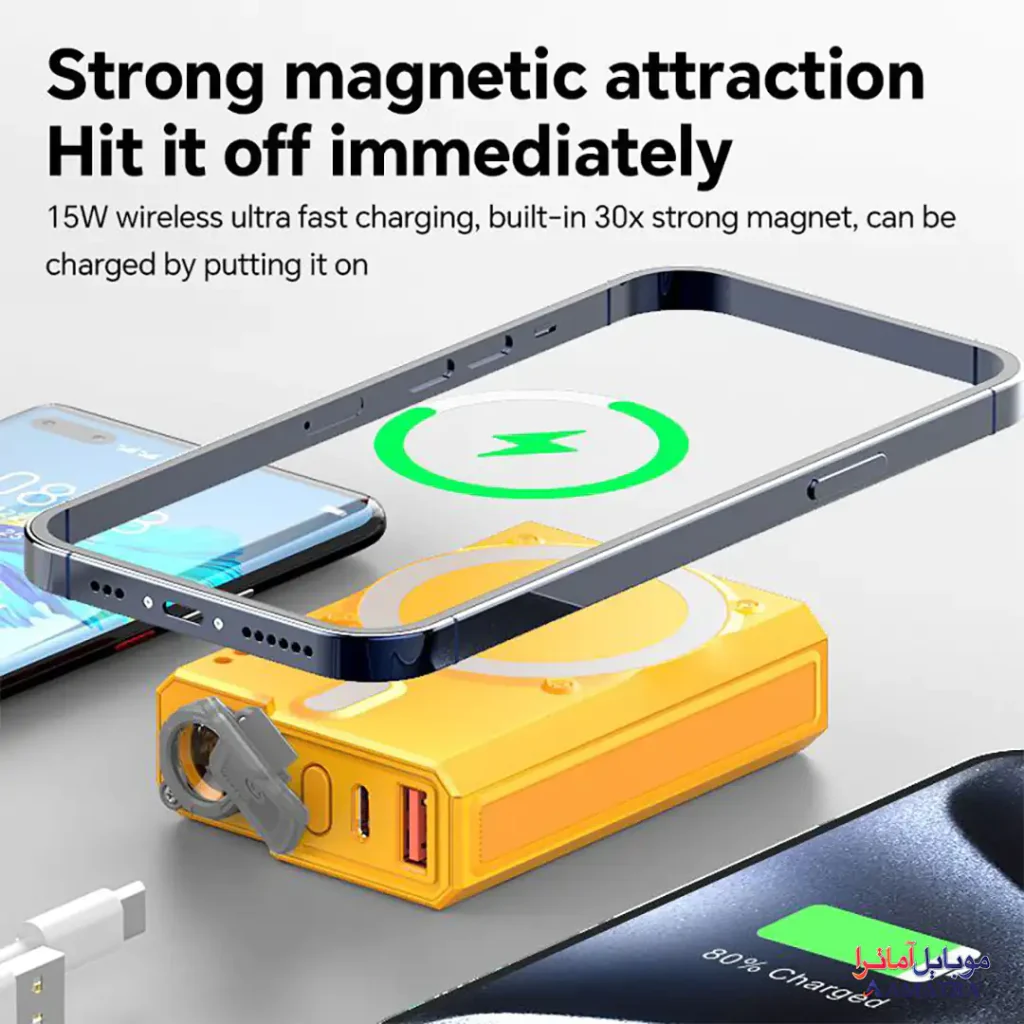 - شارژ سریع بدون نیاز به کابل، فقط کافیست گوشی را روی پاوربانک قرار دهید