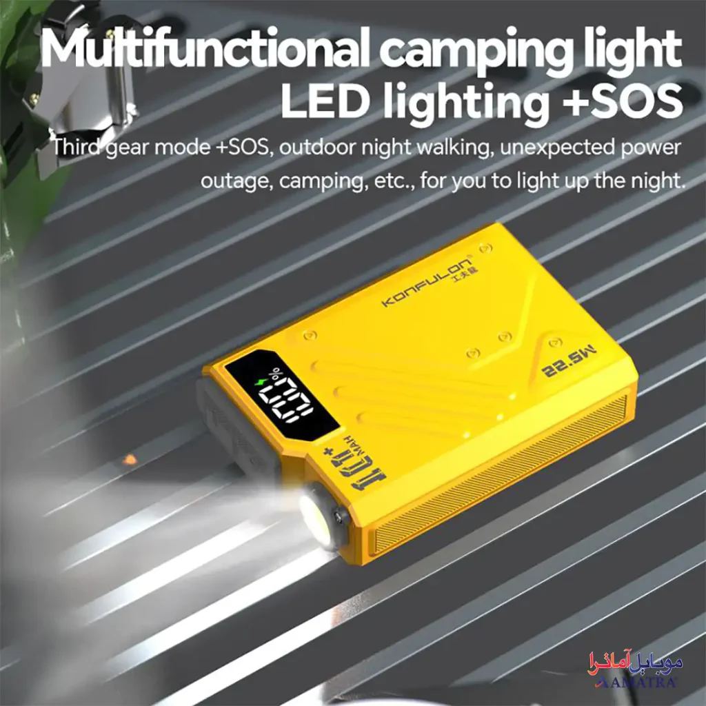 پورت USB با توان ۲۲.۵ وات (۴.۵V/۵A، ۵V/۴.۵A، ۵V/۳A، ۹V/۲A، ۱۲V/۱.۵A) از پروتکلهای QC 3.0، SCP، و AFC پشتیبانی میکند و برای گوشیهای شیائومی، هواوی، و سامسونگ (تا ۶۰٪ در ۳۰ دقیقه) مناسب است. این خروجی، انعطافپذیری بالایی برای دستگاههای متنوع فراهم میکند.