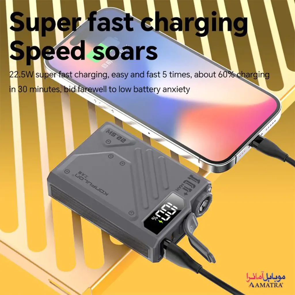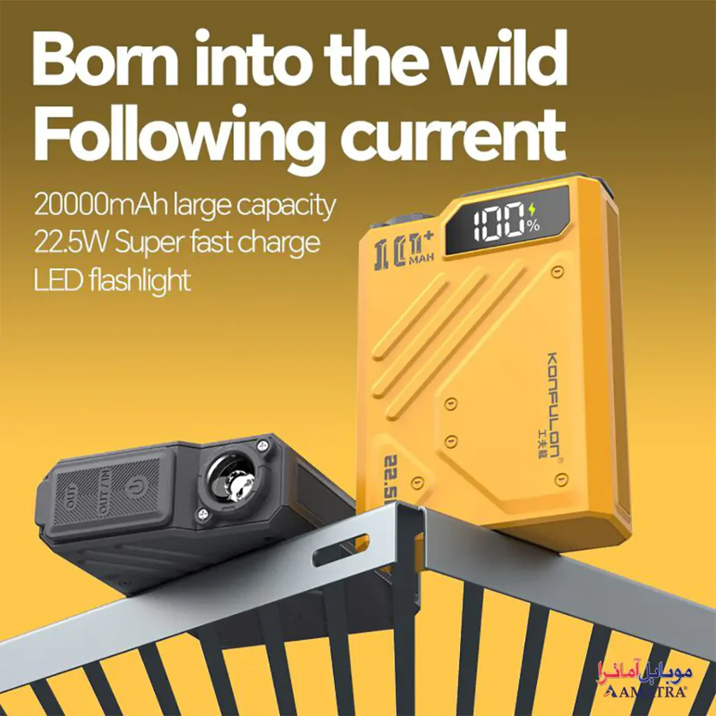 پاوربانک چراغ دار ضد آب ۱۰۰۰۰ فست شارژ مدل Konfulon A59Q برای موقعیتهای مختلف طراحی شده و نیازهای کاربران گوناگون را برآورده میکند:
