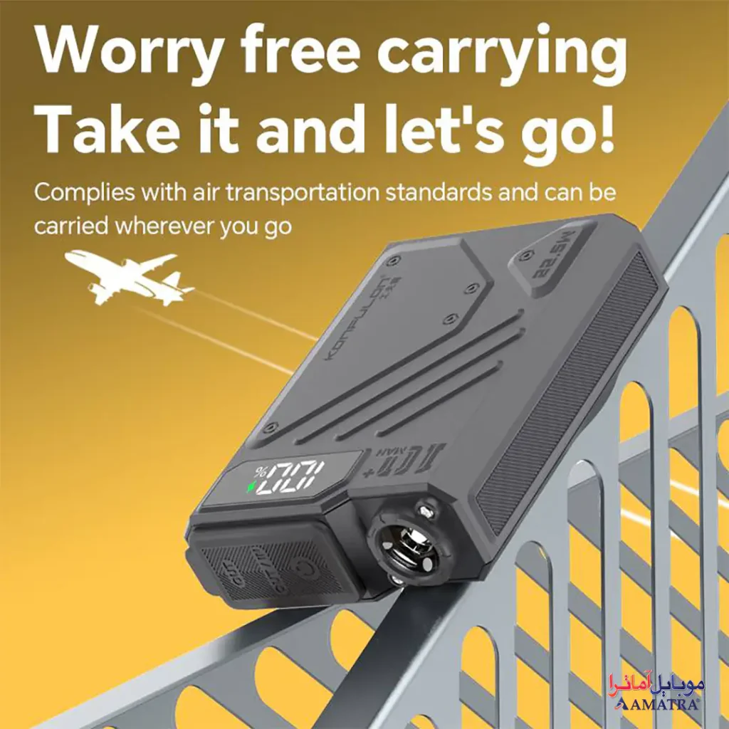 با وزن حدود ۱۸۰ گرم، بدنه مینی و بند حمل آسان، پاوربانک چراغ دار ضد آب ۱۰۰۰۰ فست شارژ مدل Konfulon A59Q برای حمل روزانه در جیب یا کیف مناسب است. طراحی شیک و مدرن، آن را به محصولی کاربردی تبدیل کرده و قابلیت حمل آسان را به حداکثر میرساند.