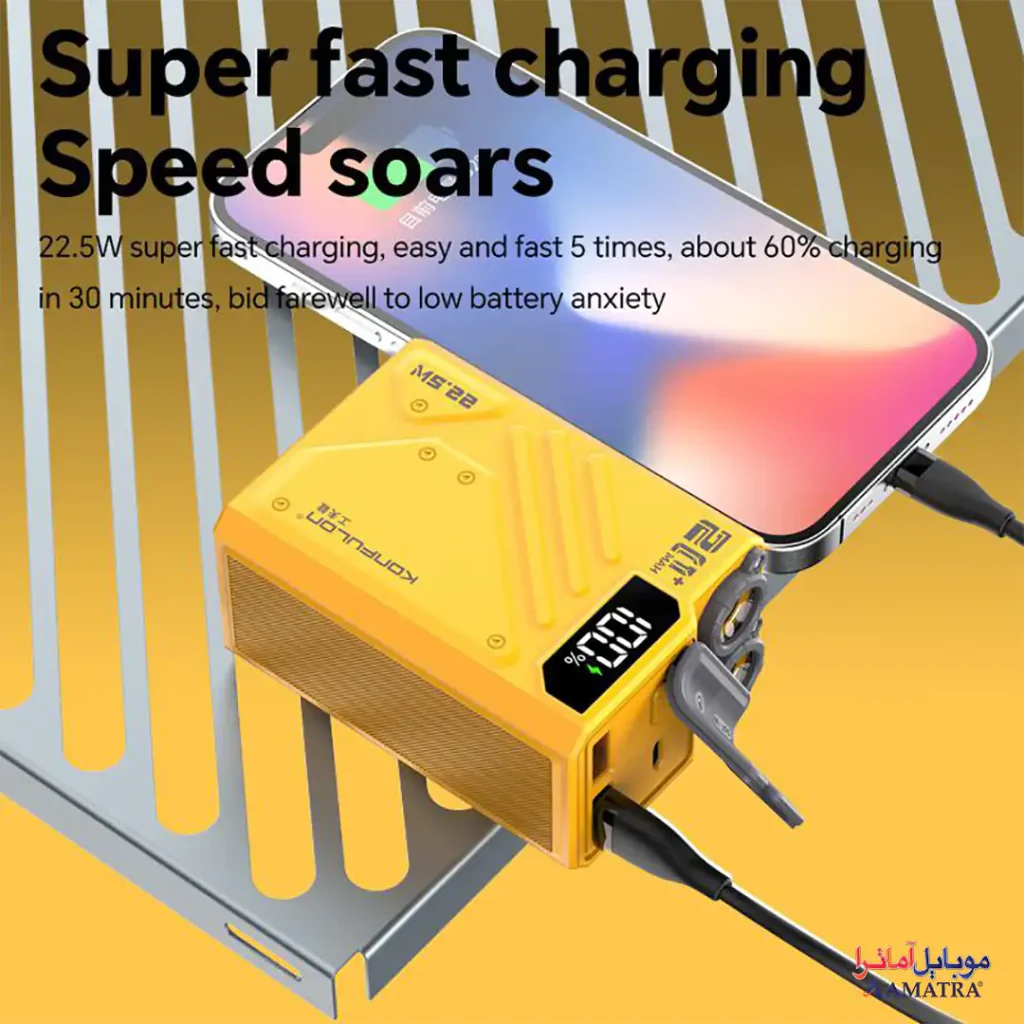 پاوربانک ۲۰۰۰۰ چراغ دار فست شارژ ضد آب مدل Konfulon A51Q برای موقعیتهای مختلف طراحی شده و نیازهای کاربران گوناگون را برآورده میکند: