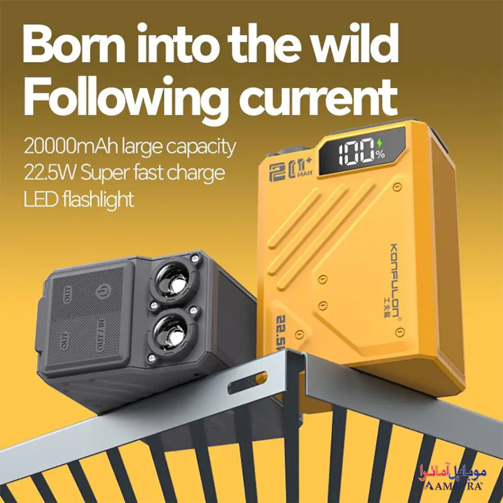 پاوربانک ۲۰۰۰۰ چراغ دار فست شارژ ضد آب مدل Konfulon A51Q قدرت و راحتی در دستان شما